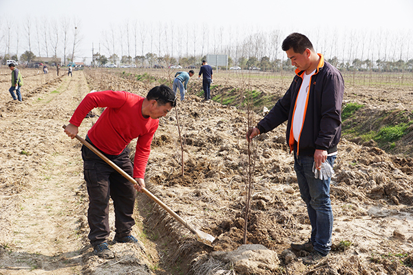 植樹現(xiàn)場,志愿者搬樹苗、鏟土、踩實、圈土,為基地增添新綠。在大家齊心協(xié)力配合下,3600株墨西哥落羽杉樹很快在春風(fēng)中昂然挺立,在明媚的陽光下透著生機與活力。