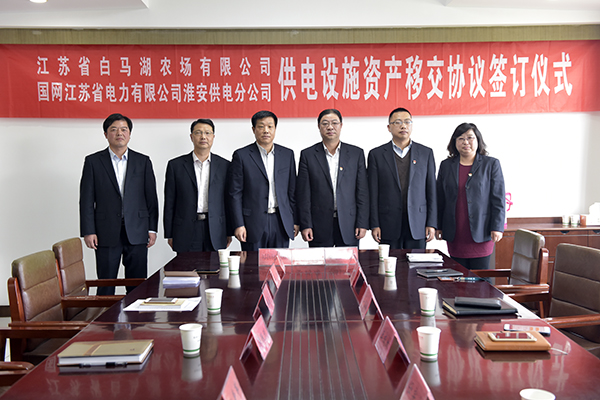 4月16日下午,江蘇省白馬湖農(nóng)場(chǎng)有限公司與國(guó)網(wǎng)江蘇省電力有限公司淮安供電分公司簽訂供電設(shè)施資產(chǎn)移交協(xié)議,開啟雙方攜手發(fā)展、合作共贏的新篇章。