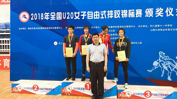 由國家體育總局主辦的2018全國青年女子自由式摔跤錦標(biāo)賽,于5月16日在山西懷仁縣落下帷幕,連云港市云臺農(nóng)場籍青年張悅奪得桂冠。張悅系連云港市云臺農(nóng)場職工張良明的女兒,土生土長的農(nóng)墾人,2017年進入國家隊后,勤學(xué)苦練,摔跤技術(shù)得到了專家的肯定,并多次在國家和亞州比賽中獲獎,目前各種狀態(tài)良好,正在積極備戰(zhàn)奧運會。(左二為張悅)
