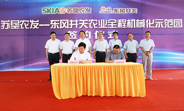 6月13日,蘇墾農(nóng)發(fā)與東風(fēng)井關(guān)農(nóng)業(yè)全程機械化示范園簽約儀式在新洋分公司舉行。