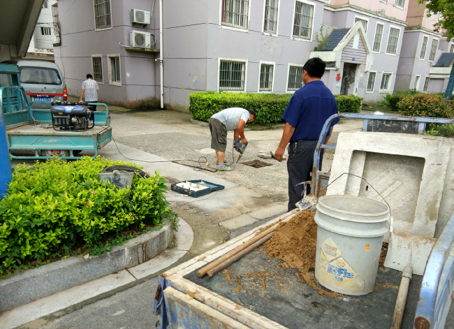 今天早晨6點40分,筆者看到,就有兩位師傅帶著修理工具和材料來到了窨井的損壞現(xiàn)場,動作麻利地進行程序化的修理修理工作。
