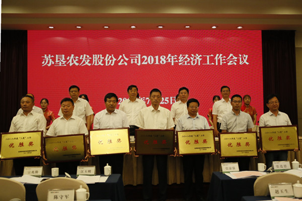 會議期間,蘇墾農(nóng)發(fā)黃海分公司、蘇墾農(nóng)發(fā)東辛分公司、蘇墾農(nóng)發(fā)臨海分公司與大華種業(yè)集團等四家單位作了交流發(fā)言。會議隆重表彰了一批上半年工作業(yè)績突出的先進集體,授予7家分公司2018年度“三夏”工作優(yōu)勝獎、6家分公司2018年度拓展基地“三夏”工作優(yōu)勝獎、3家分公司2018年度小麥高產(chǎn)獎、10家分公司2018年度夏熟效益獎、4家分公司2018年度拓展基地夏熟效益獎。7月24日晚,還專題召開蘇墾農(nóng)服工作推進會,就下一階段農(nóng)業(yè)社會化服務(wù)體系建設(shè)工作進行了部署要求。