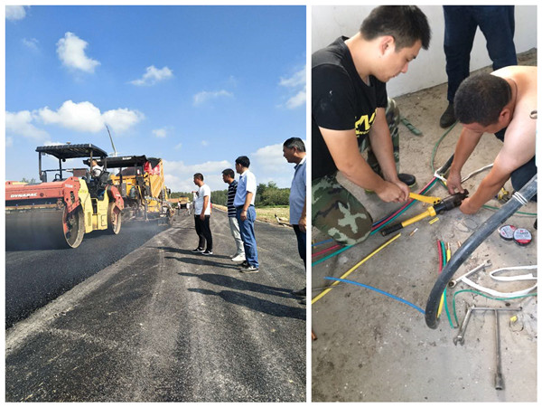 從早上7點(diǎn)開(kāi)始準(zhǔn)備,到下午6點(diǎn),大家冒著高溫的“烤驗(yàn)”,忍受著瀝青攤鋪施工中各種機(jī)械的噪音、瀝青的味道,以一整天高強(qiáng)度的勞作,順利完成了接線工程道路瀝青鋪攤工作。