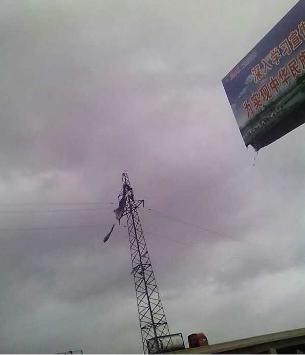 目標確定后,張榮生毫不猶豫地系上安全帶,也不管當時塔高風急的危險,頂著風雨一步一步艱難地向塔頂爬去。其他人員立即向公司領(lǐng)導和值班人員匯報故障出現(xiàn)的地點及清除情況。在供電公司,平時很輕松的登高作業(yè),今天卻在“溫比亞”風雨的侵襲下,每登一步都是很艱難,甚至眼睛都不能正常睜開。就是這樣,張榮生全然不顧,他在穩(wěn)住自己的同時,依次拉扯下廣告布,迅速排除了故障。