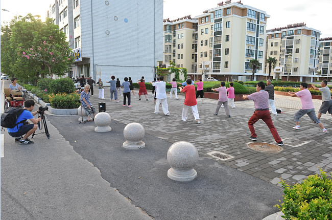 8月20下午-21日,澎湃新聞采訪組視頻記者朱偉輝、視頻編輯龍景和射陽縣新聞單位的3名記者在農(nóng)場宣傳部門相關(guān)人員的陪同下,用一天半的時(shí)間,實(shí)時(shí)用鏡頭記載百歲老人從凌晨起床、喝早茶、散步、游玩和吃飯、擇菜、做針線活以及與家人、鄰居等聊天的情況,感受百歲老人尋常的起居生活。而每拍攝一場老人的生活起居或是生活畫面,總是讓來自上海澎湃新聞采訪組的記者大加贊嘆。圖為澎湃新聞采訪組在拍攝百歲老人生活起居的一組鏡頭。