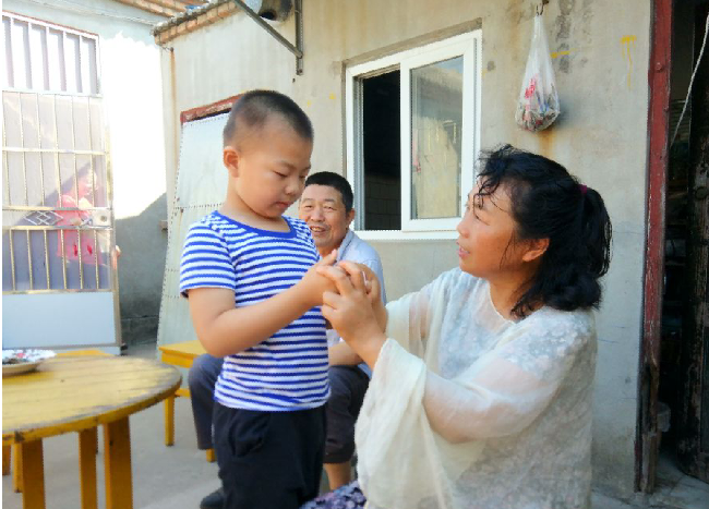 現(xiàn)在她的小孫子7歲,智力已經(jīng)達到了6歲半的水平。更讓朱鎖珍開心的是,孫子有了生活自理能力。