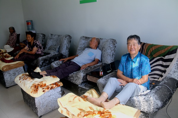 前來(lái)服務(wù)站休閑的老人