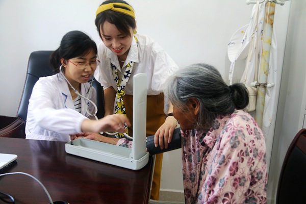 王睿琦為老人量血壓