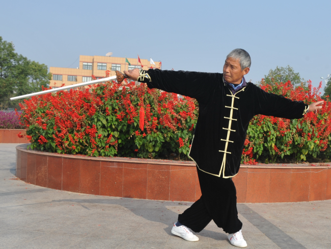 更讓林耀國欣喜的是,在練太極的過程中,讓他的生活更規(guī)律了,還在太極協(xié)會中結(jié)識了農(nóng)場不少志同道合的拳友,相互之間達(dá)到直言不諱,無話不說的地步,讓林耀國的心情十分開朗。也正如兒子林志純所講的那樣,得了五六年的慢性支氣管炎竟然達(dá)到了忽視的地步。以前氣管炎每年就要住院治療1-2次,還不斷咳嗽、氣喘不息,自從練了太極以后,就沒有再發(fā)過氣管炎,并且感覺自己的身心開始變得輕盈起來。對這,在太極協(xié)會練太極,讓林耀國收獲了人生中最快樂的時光。圖為林耀國在打太極拳劍時的鏡頭。