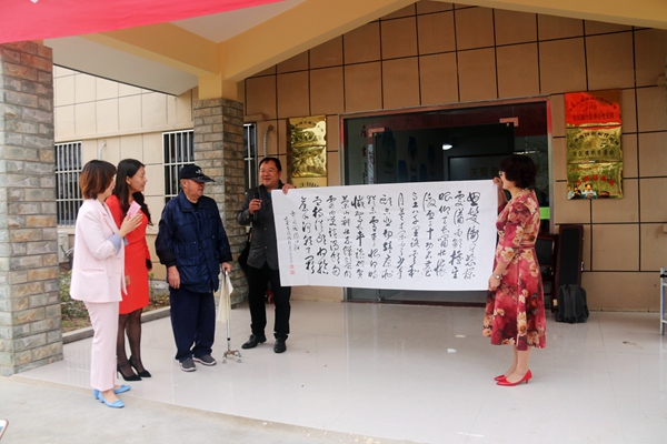 期間,資深書畫愛好者張秀亭老人向上海金色華年養(yǎng)老服務(wù)有限公司負(fù)責(zé)人鄭婕贈(zèng)送了書法作品《滿江紅》,讓在場人員領(lǐng)略了書法藝術(shù)的魅力。