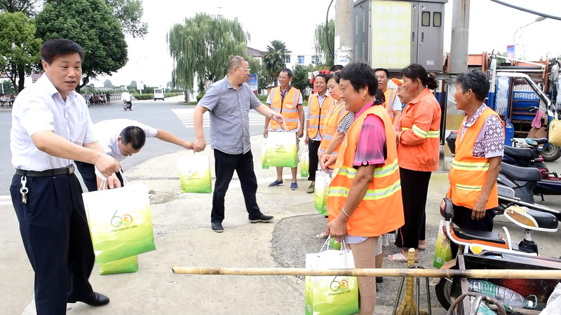 8月10日下午,集團(tuán)公司工會(huì)副主席姚海洪一行到白馬湖農(nóng)場(chǎng)公司開展送清涼活動(dòng),向20名一直奮戰(zhàn)在高溫下的環(huán)衛(wèi)或垃圾轉(zhuǎn)運(yùn)工人送上了工會(huì)大家庭的關(guān)愛和溫馨。