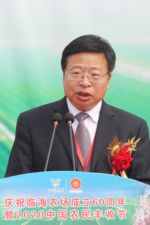 江蘇省農(nóng)墾集團公司黨委副書記、總經(jīng)理胡兆輝代表江蘇省農(nóng)墾集團公司黨委向臨海農(nóng)場公司建場60周年表示熱烈祝賀。他簡述了近年來江蘇農(nóng)墾的發(fā)展理念和取得全國農(nóng)墾利潤總額第一名的佳績,高度贊揚了臨海農(nóng)場公司建場六十周年來各項事業(yè)的發(fā)展成就。胡兆輝指出,江蘇農(nóng)墾將以“三個一”體系建設為抓手,在深化改革中不斷發(fā)展,努力打造中國現(xiàn)代農(nóng)業(yè)航母的“江蘇號”。他祝愿臨海明天更加燦爛輝煌,希望臨海人進一步解放思想,弘揚農(nóng)墾精神、社會主義先進文化,加強與地方合作,科學管理、創(chuàng)新發(fā)展、團結拼搏,為建設“經(jīng)濟強、產(chǎn)業(yè)優(yōu)、職工富、生態(tài)美、農(nóng)場興”的新農(nóng)場不懈奮斗,為江蘇農(nóng)墾建設發(fā)展做出更大貢獻!