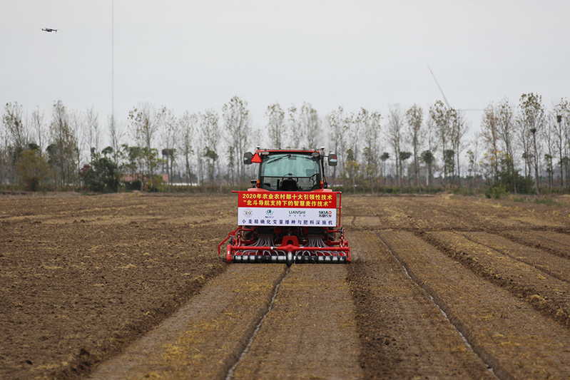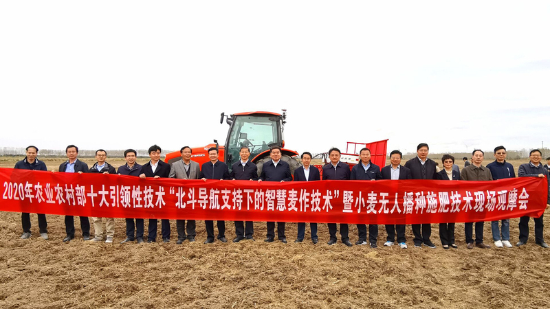11月5日,農(nóng)業(yè)農(nóng)村部2020年十大引領(lǐng)性農(nóng)業(yè)技術(shù)“北斗導(dǎo)航支持下的智慧麥作技術(shù)”小麥無人播種施肥技術(shù)現(xiàn)場(chǎng)觀摩會(huì)在臨海舉行,智慧麥作技術(shù)集成示范基地落戶蘇墾農(nóng)發(fā)智慧農(nóng)業(yè)科技園。