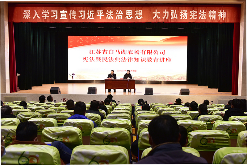 12月4日上午,在我國第七個(gè)國家憲法日和第三個(gè)“憲法宣傳周”之際,白馬湖農(nóng)場公司圍繞“深入學(xué)習(xí)貫徹習(xí)近平法治思想 大力弘揚(yáng)憲法精神”這一主題,通過舉辦憲法暨民法典法律知識(shí)教育講座,同時(shí)啟動(dòng)開展“法治宣傳月”和“憲法宣傳周”活動(dòng),深刻宣傳領(lǐng)會(huì)黨的十九屆五中全會(huì)精神,深化了解把握全面依法治國的重大意義。