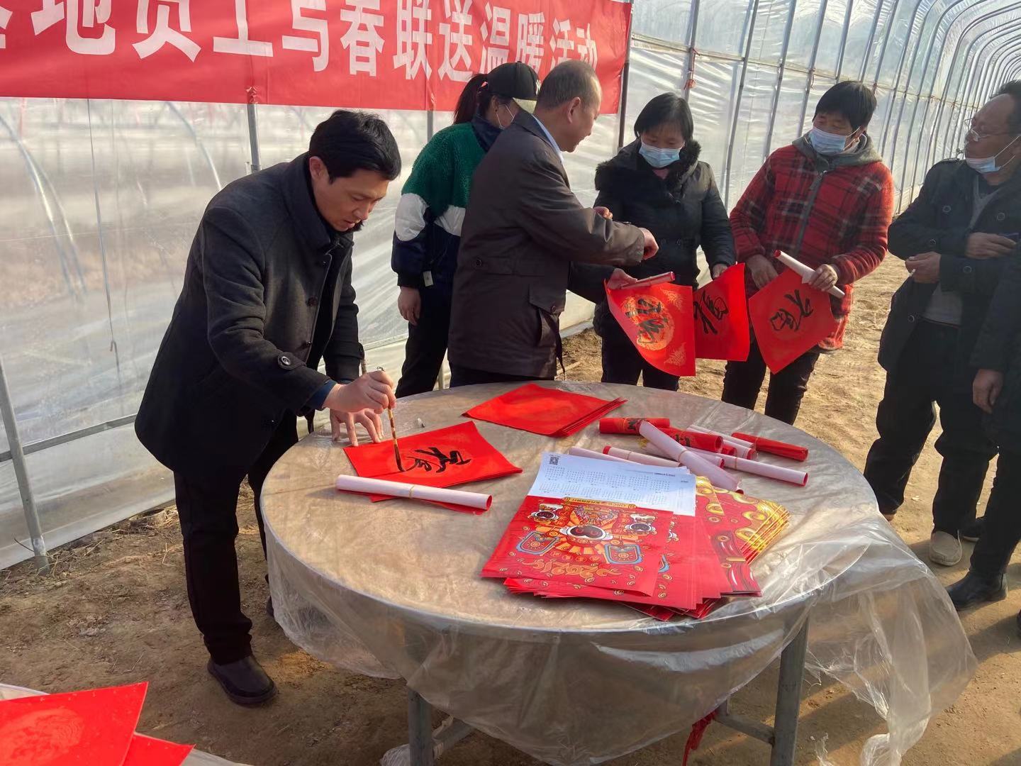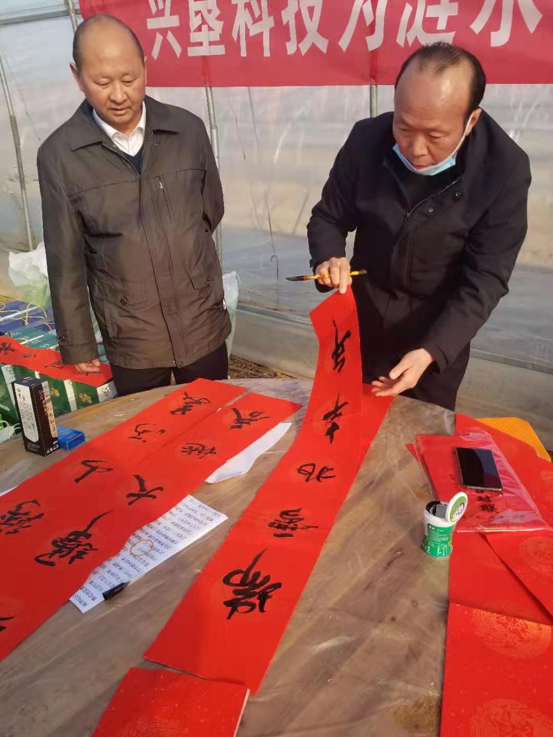 楊育清、馬傳武親自揮毫潑墨,為村民寫春聯(lián)、送福氣,“實干興邦唱新曲、勤勞致富奔小康”一幅幅寓意吉祥的對聯(lián)贈與村民,一句句真誠的祝福都寄托了辭舊迎新、接福納祥的美好愿景。同時也給員工送去了精神食糧,受到當(dāng)?shù)卮迕褚恢潞迷u,活動現(xiàn)場洋溢著歡樂祥和的過年氣氛。