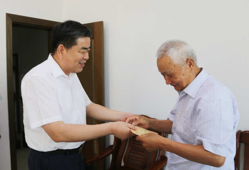 魏紅軍一行來到退休老黨員陳之祥家中,與他親切交談,仔細詢問近期的生活狀況和身體情況。陳之祥老人晚年不幸患有肝癌,但心態(tài)積極樂觀,目前還擔任老干部支部書記,繼續(xù)在為黨組織發(fā)揮余熱。魏紅軍為他送上慰問金,并對老人樂觀向上充滿正能量表示贊賞,同時鼓勵要堅定生活信心,安心治病,安享幸福的晚年生活。在困難退休職工夏群武家中,當?shù)弥娜何淅先嘶加袊乐嘏两鹕C合癥、且獨自一人生活時,魏紅軍緊緊握住他的手,鼓勵他一定要鼓起生活的勇氣,保持愉悅的心情,將慰問金交到他手中,并囑咐農(nóng)場公司負責同志盡力予以關心照顧。老人連連點頭感謝黨,感謝集團公司黨委。