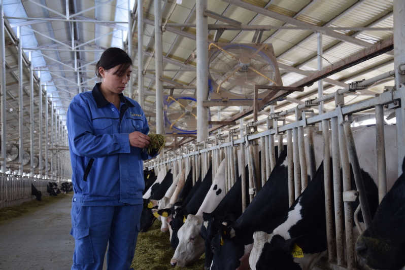 2020年,因為新型冠狀病毒肺炎正在肆虐全國,肉蛋奶又是居民生活必需品。新冠肺炎疫情發(fā)生以來,養(yǎng)殖業(yè)發(fā)展遇到新的困難,作為一名黨員,祝英告誡自己不能退縮,她主動沖在生產(chǎn)第一線,為職工宣傳防疫知識,與同事們一起放棄春節(jié)休假,一直奮戰(zhàn)在抗疫第一線,讓“小團隊”發(fā)揮“大作用”。疫情就是命令,防控就是責(zé)任。戰(zhàn)“疫”號角吹響后,祝英坦言,“作為一名黨員,抗擊疫情,我必須時刻堅守在第一線。”在困難面前,東旺公司生產(chǎn)幾乎沒有受到影響,產(chǎn)量穩(wěn)定、牛群健康狀況良好,這與一百多名與祝英一樣平凡的“逆行者”的努力是分不開的。一個黨員就是一面旗幟,一個支部就是一座堡壘,祝英用行動詮釋了一名共產(chǎn)黨員的初心和使命,展現(xiàn)一名新時代女性的責(zé)任與擔(dān)當(dāng),在平凡的崗位盡展巾幗風(fēng)采。(圖為祝英查看飼料情況)