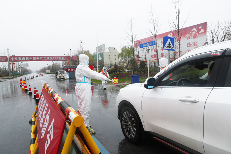 “您好,請出示您的行程碼,配合我們測量體溫……”3月25日上午,外面仍然下著大雨,在新洋農(nóng)場疫情防控西卡口點(diǎn)上,頭發(fā)和臉龐早已濕透的防疫人員一邊打著手勢,一邊對來往人員車輛進(jìn)行引導(dǎo)檢查,整個(gè)程序有條不紊。