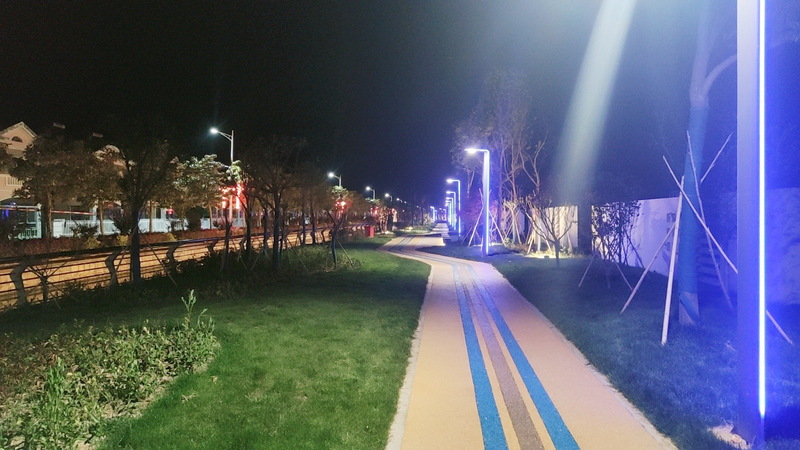 “沒想到農(nóng)場也建起了健身步道,而且步道兩側(cè)還栽種了許多綠化苗木和花草,還配置了許多景觀小品、休息坐椅、親水平臺,生活在農(nóng)場真是太幸福了。”居住在農(nóng)場神禾路別墅區(qū)的張老漢望著河對岸清新的環(huán)境感慨地說道,“沒建這個步道前,其間要么是堆積的雜物、雞鴨棚或是種植的莊稼,破敗的狀況讓人不忍直視。現(xiàn)在好啦,新砌的圍墻將步道與居住區(qū)隔開,道路是彩色道路,兩邊還裝了別致的路燈,不同的樹木自成一體,大家茶余飯后就可以在步道上邊散步邊聊天了。”