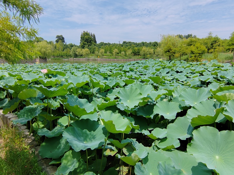 隨著氣溫持續(xù)升高,公園內(nèi)的荷花競(jìng)相開放,荷葉碧翠欲滴,展現(xiàn)了一副接天蓮葉無窮碧,映日荷花別樣紅的魅力畫卷,讓人感受到一絲絲涼意。周邊居民陳先生說:“有了荷花,這里的夏天更加漂亮了”。湖邊是垂柳依依,隨風(fēng)浮動(dòng)。荷葉一個(gè)接著一個(gè)鋪了滿塘,有的盛著晶瑩剔透的水珠,不禁想起小時(shí)候不懂事,會(huì)把荷葉折下來,拿在手中轉(zhuǎn)圈圈。