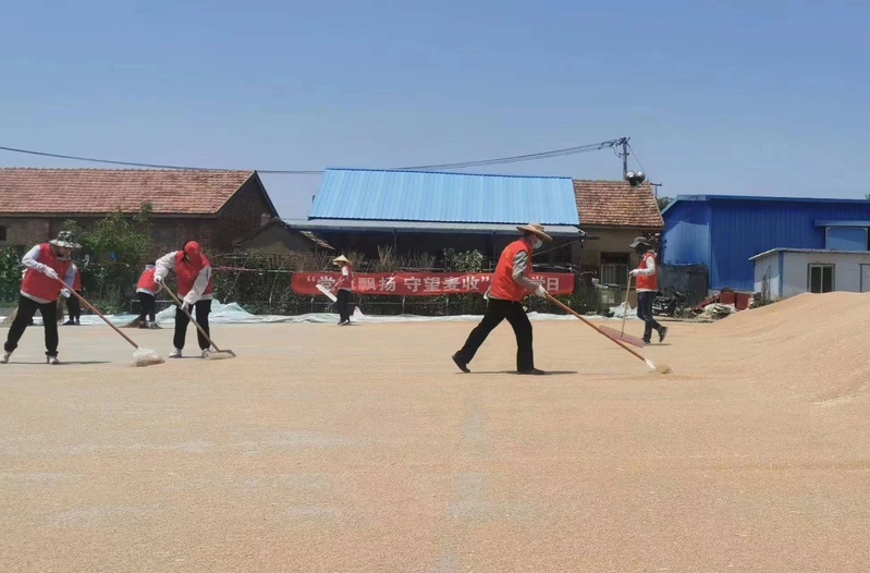 面對(duì)6月11日即將來(lái)臨的降雨天氣,東辛緊急吹響雨前顆粒歸倉(cāng)“集結(jié)號(hào)”。各黨支部充分發(fā)揮戰(zhàn)斗堡壘作用,與掛鉤生產(chǎn)區(qū)聯(lián)合開(kāi)展“黨旗飄揚(yáng) 守望麥?zhǔn)铡敝黝}黨日活動(dòng),把黨支部搬到田間地頭,讓黨旗在田間飄揚(yáng)。黨員佩戴黨徽,亮出身份做表率,走入晾曬場(chǎng),用實(shí)際行動(dòng)解決搶時(shí)收割、烘干晾曬等實(shí)際困難,“三夏”火熱實(shí)踐成為了開(kāi)展主題教育的生動(dòng)“課堂”和實(shí)踐“基地”。
