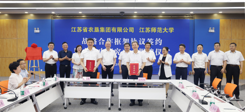 8月10日上午,集團(tuán)公司與江蘇師范大學(xué)戰(zhàn)略合作框架協(xié)議簽約暨農(nóng)墾史研究中心揭牌儀式在徐州舉行。集團(tuán)公司黨委書記、董事長(zhǎng)魏紅軍,江蘇師范大學(xué)黨委書記方忠出席并致辭。集團(tuán)公司黨委副書記、總經(jīng)理胡兆輝與江蘇師范大學(xué)黨委副書記、校長(zhǎng)周汝光共同為江蘇師范大學(xué)農(nóng)墾史研究中心揭牌。集團(tuán)公司黨委副書記姚準(zhǔn)明與江蘇師范大學(xué)黨委常委、副校長(zhǎng)蔡國(guó)春共同簽署《戰(zhàn)略合作框架協(xié)議》。江蘇師范大學(xué)農(nóng)墾史研究中心主任岑紅發(fā)言。集團(tuán)公司黨委委員、總會(huì)計(jì)師劉克英,黨委委員、紀(jì)委書記李旭東,副總經(jīng)理劉耀武,黨委委員、副總經(jīng)理王立新,黨委委員、工會(huì)主席楊義林,江蘇師范大學(xué)黨委常委、黨委宣傳部部長(zhǎng)孟召學(xué),黨委常委、黨委統(tǒng)戰(zhàn)部部長(zhǎng)、黨委辦公室主任商亮出席。