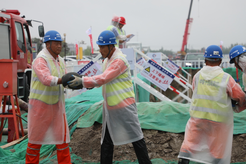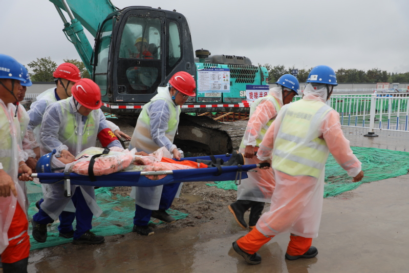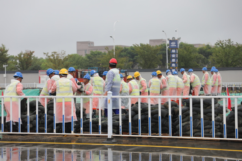 為進一步樹牢安全發(fā)展理念、壓實安全生產(chǎn)責任、防范化解重大風險、提升干部職工應急處置能力,8月29日,江心沙攜手中鐵十四局海太長江隧道工程項目部開展防臺防汛綜合應急演練。圖為筑堤防洪、醫(yī)療救助、緊急撤離等演練場景。