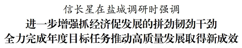 10月28日,省委書(shū)記信長(zhǎng)星到鹽城市鹽都區(qū)、東臺(tái)市調(diào)研。他強(qiáng)調(diào),四季度是全年決勝階段,要深入學(xué)習(xí)貫徹習(xí)近平總書(shū)記重要講話精神,錨定年度目標(biāo)任務(wù),堅(jiān)定信心、把握機(jī)遇,進(jìn)一步增強(qiáng)抓經(jīng)濟(jì)、促發(fā)展的拼勁、韌勁、干勁,推動(dòng)高質(zhì)量發(fā)展取得新成效,努力為全省發(fā)展大局貢獻(xiàn)更大力量。