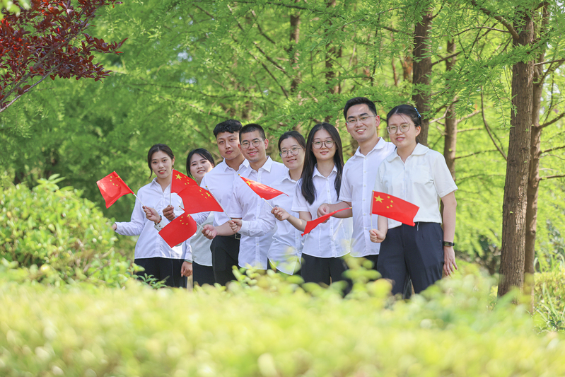 9月27日,在江蘇省鹽城市射陽縣,江蘇農(nóng)墾新洋農(nóng)場(chǎng)組織青年員工開展“我與國旗合影”活動(dòng)。張偉生 攝