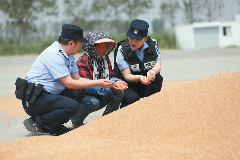 近日,連云港市東辛農(nóng)場小麥進入大面積機收階段。連云港市公安局徐圩新區(qū)分局東辛派出所提前謀劃,周密部署,安排多組警力深入田間地頭、農(nóng)場曬場,積極開展安全生產(chǎn)作業(yè)、防暑降溫、防火防盜等安全提醒,確保麥收平安有序進行。