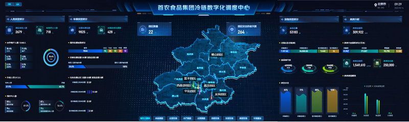 近年來(lái),五環(huán)順通全面推動(dòng)冷鏈物流提檔升級(jí),建立了人、車、貨、庫(kù)全鏈路的冷庫(kù)溯源管理信息系統(tǒng),大廳的智慧大屏可以實(shí)時(shí)查看多維度的冷鏈物流運(yùn)送信息。