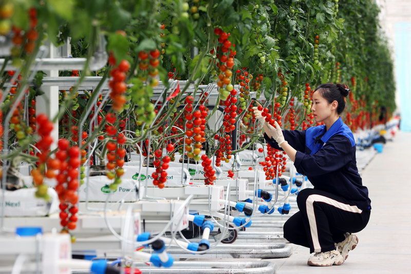 初夏時(shí)節(jié),在位于海淀上莊的首農(nóng)食品集團(tuán)旗下“翠湖智慧農(nóng)業(yè)創(chuàng)新工場(chǎng)”智能連棟溫室內(nèi),一排排高品質(zhì)番茄正奮力汲取著養(yǎng)分向上生長(zhǎng)。