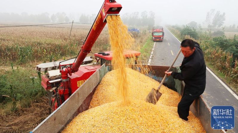 10月11日,江蘇省連云港市海州區(qū)崗埠農(nóng)場工作人員在裝運(yùn)玉米。