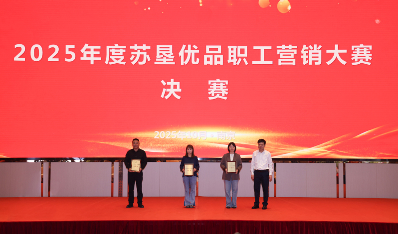 10月17日,備受關注的2025年 “蘇墾優(yōu)品” 職工營銷大賽決賽在寧圓滿收官。集團公司黨委書記、董事長吳本輝,黨委副書記朱浩,黨委委員、副總經理王立新出席活動并為獲獎團隊頒獎。