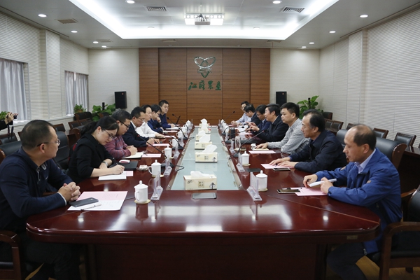 海南農(nóng)墾到集團公司考察交流    10月27日下午,海南省農(nóng)墾投資控股集團有限公司總經(jīng)理王業(yè)僑一行到集團公司考察交流。集團公司黨委書記、董事長魏紅軍會見,總經(jīng)理胡兆輝出席座談并全
