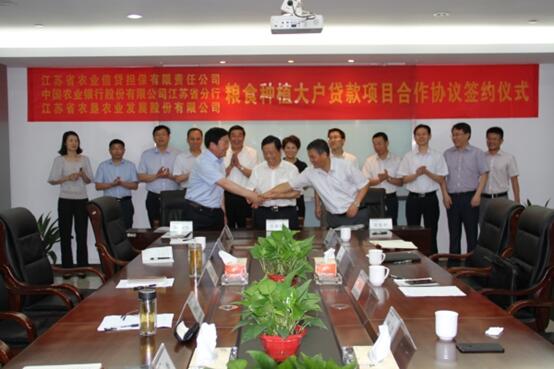 6月21日下午,蘇墾農(nóng)發(fā)、省農(nóng)行、省農(nóng)擔(dān)公司在寧舉行全省糧食種植業(yè)大戶貸款項(xiàng)目合作簽約儀式。集團(tuán)公司總經(jīng)理、蘇墾農(nóng)發(fā)董事長(zhǎng)胡兆輝,省農(nóng)行黨委副書記、副行長(zhǎng)周吉,省農(nóng)擔(dān)公司副總經(jīng)理朱旭東出席并講話,