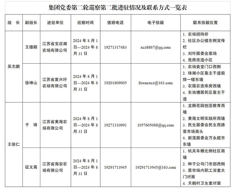 根據(jù)集團(tuán)黨委統(tǒng)一部署,8月1日,集團(tuán)黨委巡察組已完成第二輪第二批4家被巡察黨組織進(jìn)駐工作。各被巡察單位分別召開(kāi)巡察進(jìn)駐動(dòng)員會(huì)。會(huì)上,集團(tuán)黨委巡察組組長(zhǎng)作動(dòng)員講話(huà),深入學(xué)習(xí)貫徹習(xí)近平總書(shū)記關(guān)于黨的自我革命的重要思想和關(guān)于巡視工作的重要論述,通報(bào)集團(tuán)黨委第二輪巡察工作重點(diǎn)和任務(wù)安排,對(duì)扎實(shí)開(kāi)展巡察工作提出要求。本輪巡察,集團(tuán)黨委巡察組將聚焦“兩個(gè)維護(hù)”根本任務(wù)和推進(jìn)黨的自我革命“九個(gè)以”實(shí)踐要求,緊扣因地制宜發(fā)展新質(zhì)生產(chǎn)力、國(guó)企改革深化提升行動(dòng)和“建設(shè)現(xiàn)代農(nóng)業(yè)大基地、大企業(yè)、大產(chǎn)業(yè)”等重大任務(wù),全面貫徹黨的巡視工作方針,圍繞政治巡察“四個(gè)聚焦”監(jiān)督重點(diǎn),緊盯權(quán)力和責(zé)任,緊盯“一把手”和領(lǐng)導(dǎo)班子,緊盯群眾反映強(qiáng)烈的問(wèn)題,開(kāi)展政治監(jiān)督,查找政治偏差,推動(dòng)被巡察單位各項(xiàng)工作高質(zhì)量發(fā)展,為打造現(xiàn)代農(nóng)業(yè)航母、加快建設(shè)一流企業(yè)、構(gòu)建“清風(fēng)在田”廉潔生態(tài)體系提供堅(jiān)強(qiáng)保障。集團(tuán)黨委巡察組將在被巡察單位現(xiàn)場(chǎng)工作一個(gè)月。巡察期間,設(shè)專(zhuān)門(mén)值班電話(huà)、電子信箱、聯(lián)系信箱等,主要受理涉及被巡察單位領(lǐng)導(dǎo)班子及其成員、相關(guān)重點(diǎn)崗位干部(含已離退休、已調(diào)離)的問(wèn)題反映。巡察組在第二批被巡察單位受理信訪(fǎng)時(shí)間截止到2024年8