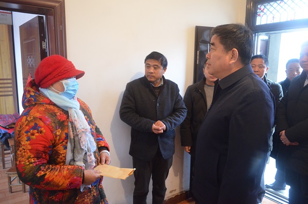 1月10日 下午,集團公司黨委書記、董事長魏紅軍到三河走訪慰問部分困難職工,雖然陰霾的天空不時飄著小雨,但受慰問的困難職工家中卻是暖意融融?! ≡谏鐓^(qū)居民李軍家,魏紅軍握著李軍的手