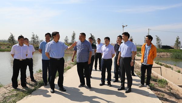 6月21日下午,省農(nóng)墾集團(tuán)公司總經(jīng)理胡兆輝、副總經(jīng)理姜建友、仲小兵及相關(guān)部室負(fù)責(zé)人到云臺(tái)專題調(diào)研環(huán)境污染防治工作。農(nóng)場公司黨委書記劉衛(wèi)華、黨委副書記宋光鋒陪同調(diào)研?! 『纵x一行來到云臺(tái)后直奔東池