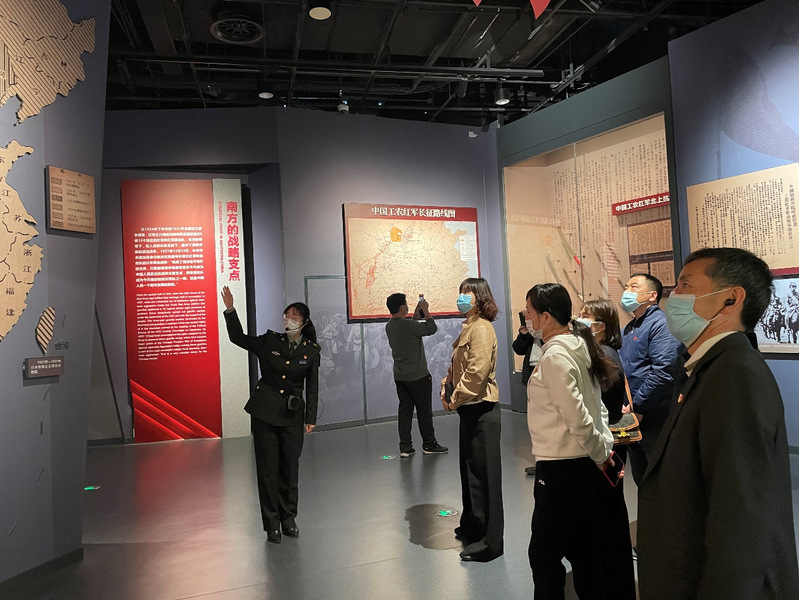不朽的軍魂,永恒的激勵。稍作休息后,下午大家共同趕赴鹽城新四軍紀(jì)念館。緊跟解說員的步伐,大家依次參觀學(xué)習(xí)了《治國精英》《將帥風(fēng)采》《群星璀璨》《英烈千秋》四個陳展部分,隨著展館的切換,大家的心情也跟著跌宕起伏。初建時的新四軍不僅要面對敵人的兇殘殺戮,還要面對缺衣少食、武器簡陋的現(xiàn)實情況,盡管如此,新四軍憑借著鐵軍精神,堅守在敵后戰(zhàn)場進行艱苦卓絕的抗日斗爭,先后奪取了八灘戰(zhàn)斗、陳家港戰(zhàn)斗、阜寧戰(zhàn)役等重大勝利,沉重打擊了敵對勢力。在炮火硝煙中,新四軍將士用鮮血和生命鑄就了新四軍鐵軍精神“聽黨指揮的鐵的堅定,報國為民的鐵的擔(dān)當(dāng),英勇頑強的鐵的作風(fēng),執(zhí)紀(jì)嚴(yán)明的鐵的紀(jì)律”。