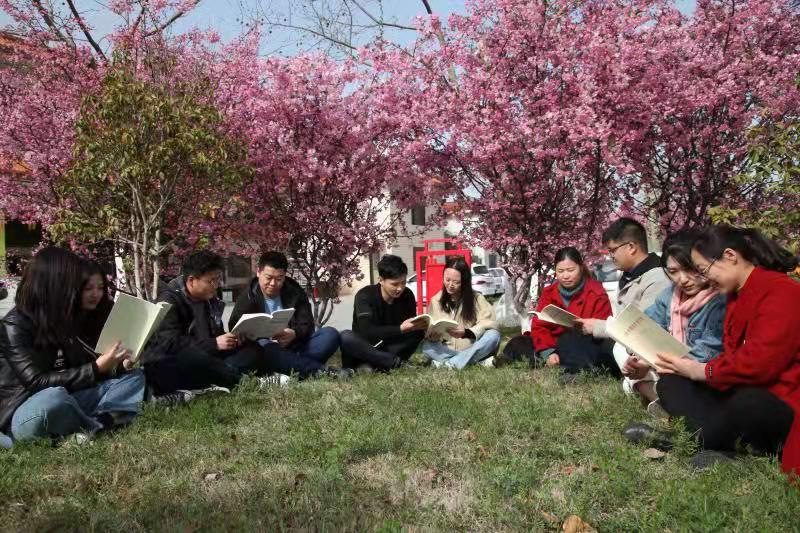 近日,云臺農(nóng)場機關(guān)院內(nèi)的海棠花下,陣陣讀書聲及討論聲引起了大家的注意,原來是一群年輕的黨員、入黨積極分子利用工余時間聚在海棠花下學黨史呢。只見他們圍坐著在一起,時而討論,時而沉思,時而聆聽,氣氛嚴肅而活潑。