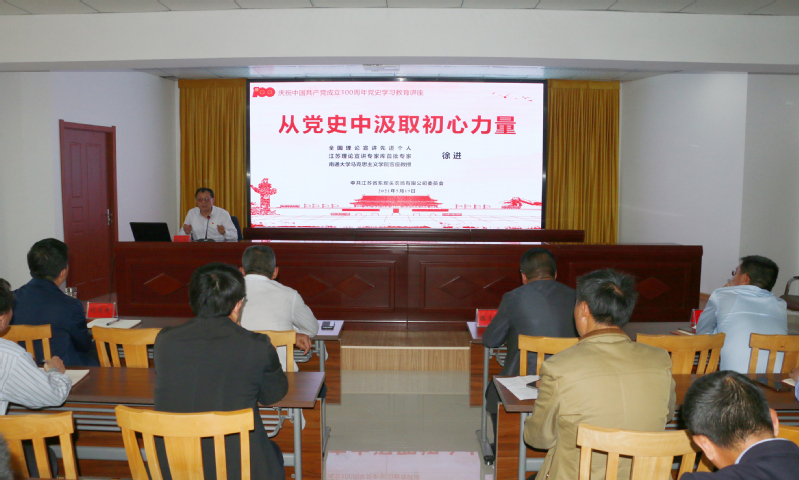 為深入貫徹黨史學習教育工作部署,5月19日下午東壩頭舉辦了“從黨史中汲取初心力量”黨史學習教育專題講座。會議邀請全國理論宣講先進個人、江蘇理論宣講專家?guī)焓着鷮<?、南通大學馬克思主義學院客座教授徐進教授授課,會議由農場公司黨委書記、分公司總經理滕金平主持。黨委班子成員、各支部書記、支委委員、全體管理人員參加。