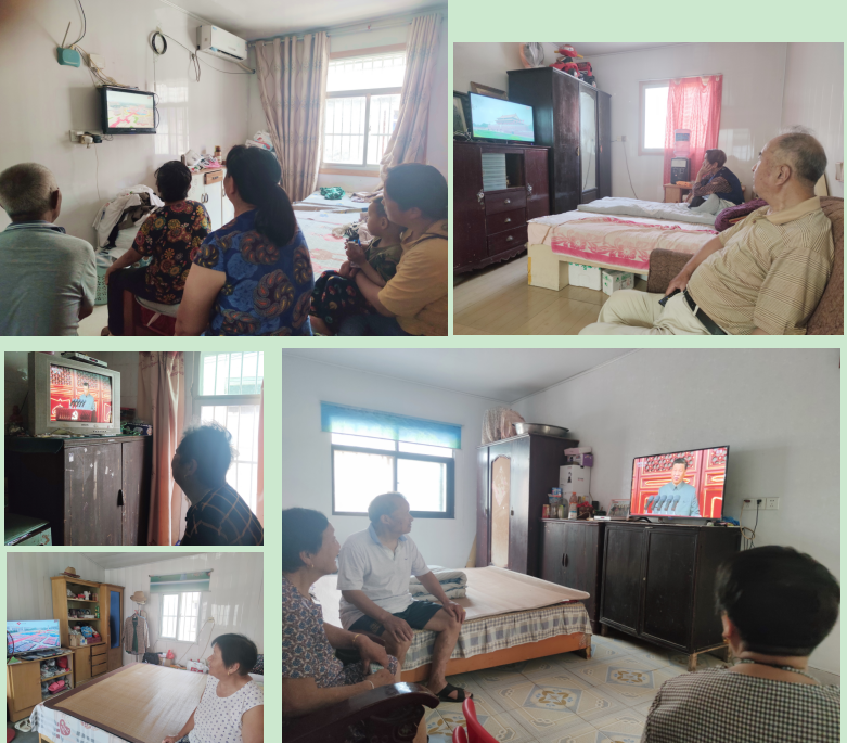行走在農(nóng)場各個居民小區(qū)間,耳邊可以時常聽到大會直播盛況的聲響,農(nóng)場社區(qū)的職工居民紛紛通過收看收聽電視直播,分享這激動人心的時刻。