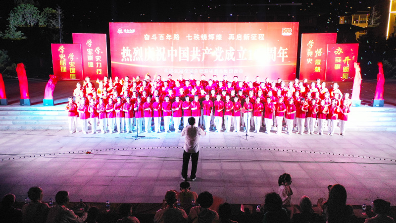 晚會(huì)由150人組成的鑼鼓隊(duì)和健走隊(duì)巡游拉開(kāi)帷幕,隊(duì)員們身著統(tǒng)一服裝,手舉黨旗、國(guó)旗從云荷廣場(chǎng)出發(fā)至東山路再到普山路?,F(xiàn)場(chǎng)近百人的威風(fēng)鑼鼓氣勢(shì)磅礴,社區(qū)領(lǐng)導(dǎo)上臺(tái)致辭后,演出活動(dòng)在歡快的非洲鼓《中國(guó)范》表演中正式開(kāi)始。舞蹈《一杯美酒》《亞麗古娜》抒發(fā)了人們對(duì)新生活的追求與渴望;詩(shī)朗誦《我驕傲我是中國(guó)人》《少年中國(guó)說(shuō)》《我愛(ài)你,中國(guó)》表達(dá)做為一名中國(guó)人驕傲和自豪,已經(jīng)深深植根于每個(gè)中國(guó)人的心中,表達(dá)了對(duì)革命前輩的崇敬和對(duì)祖國(guó)的熱愛(ài);男聲獨(dú)唱《我和我的祖國(guó)》用無(wú)限的深情表達(dá)了同祖國(guó)共命運(yùn)、心連心,祖國(guó)是我們億萬(wàn)炎黃子孫生命的寄托之情;演講《百年征程史不忘初心路》則講述的是本場(chǎng)老革命、老黨員闞立仁同志在朝鮮戰(zhàn)場(chǎng)上的真實(shí)故事,感人至深,表達(dá)了對(duì)革命前輩的崇敬,讓現(xiàn)場(chǎng)黨員群眾以“沉浸式”感受此次文藝演出帶來(lái)的精神洗禮。快板表演唱《美麗云臺(tái)》、建黨百年表演唱《少年》等一系列節(jié)目輪番上演,精彩紛呈;社區(qū)工作人員用恢弘磅礴的氣勢(shì)合唱《保衛(wèi)黃河》,飽含深情,感受我黨從槍林彈雨和日寇的封鎖線走來(lái),我們伴著歌聲奮勇殺敵的場(chǎng)景歷歷在目,表達(dá)了對(duì)中國(guó)共產(chǎn)黨成立100周年的深深祝福。演出在居民百人激情大合唱《大海航行靠舵手》《沒(méi)有共產(chǎn)黨就沒(méi)有新中國(guó)》的歌聲中推向最高潮,表達(dá)對(duì)祖國(guó)的熱愛(ài)與祝福。