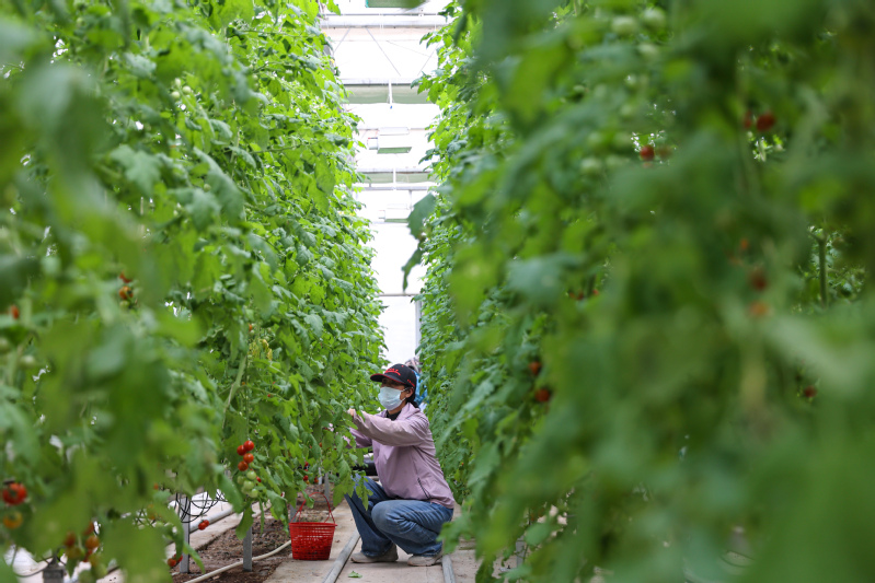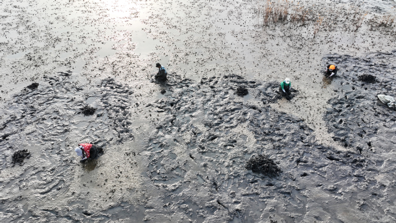 隨著氣溫逐漸升高,為保障羊肚菌正常生長發(fā)育,2月10日上午,淮海產(chǎn)業(yè)發(fā)展中心大棚基地工作人員,積極抓住羊肚菌原基萌發(fā)這一關(guān)鍵節(jié)點,有條不紊地進(jìn)行揭膜、搭小棚等催菇前的準(zhǔn)備工作。“今天是我們第一批羊肚菌播種后的第73天,目前有11個種植大棚內(nèi)的羊肚菌菌霜已經(jīng)完全消退,且出現(xiàn)了大量的原基,說明這批羊肚菌的菌絲已經(jīng)達(dá)到成熟,進(jìn)入下一個發(fā)育階段?!毖蚨蔷N植技術(shù)員袁亞洲介紹說,“羊肚菌原基的形成是羊肚菌生長過程中的一個重要環(huán)節(jié),因此我們要及時揭開覆蓋在畦面上的地膜,保證原基獲取適宜的生長環(huán)境,確保原基能夠茁壯生長。?”羊肚菌大棚內(nèi),90多米長的畦面上,斷斷續(xù)續(xù)鋪滿了米粒大小的白色菌菇。技術(shù)員李博正拿著手機(jī),在揭開地膜后的大棚內(nèi)來回穿梭,不時蹲下身子仔細(xì)查看羊肚菌原基的長勢,以及對營養(yǎng)袋中營養(yǎng)物質(zhì)的吸收情況?!把蚨蔷z扭結(jié)成球,形成晶瑩透明的米粒狀結(jié)構(gòu),就是羊肚菌的原基。因為十分微小,所以我都拿手機(jī)相機(jī)放大來看。”李博介紹說,“我們有好幾個種植大棚都出現(xiàn)了一兩個羊肚菌幼菇,也就是所謂的‘信號菇’,說明羊肚菌發(fā)育狀況良好,看來今年我們羊肚菌的產(chǎn)量前景不錯哩。?”為了達(dá)到增溫保濕的效果,基地的工作
