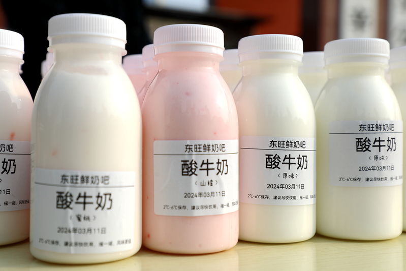 自3月11日起,東旺鮮奶吧特推出為期三天免費(fèi)品嘗新品酸奶活動(dòng),活動(dòng)共設(shè)置三個(gè)點(diǎn)位,分別在東辛商城東門、金色家園小區(qū)北門、機(jī)關(guān)辦公大樓門口,每天限量提供200瓶當(dāng)天制作的酸奶供廣大職工群眾品嘗。該產(chǎn)品一經(jīng)推出便刷爆朋友圈深受好評(píng),無論從口感、品質(zhì)還是營(yíng)養(yǎng)方面都倍受消費(fèi)者青睞。東旺鮮奶吧于今年2月9日正式營(yíng)業(yè),店內(nèi)環(huán)境舒適優(yōu)雅,現(xiàn)推出巴氏殺菌鮮奶、風(fēng)味酸牛奶等多款特色乳品,其中風(fēng)味酸牛奶倍受消費(fèi)者喜愛,此款新上市的風(fēng)味酸奶全部采用東旺奶牛公司自有牧場(chǎng)奶源,生鮮乳品質(zhì)遠(yuǎn)超歐盟標(biāo)準(zhǔn), 店內(nèi)殺菌、加熱、發(fā)酵等生產(chǎn)流程嚴(yán)格執(zhí)行食品行業(yè)相關(guān)規(guī)定,制作過程中不添加一滴水和任何食品添加劑、色素等,配料表及營(yíng)養(yǎng)成分優(yōu)于市場(chǎng)半數(shù)產(chǎn)品?!按蜷_瓶蓋就能聞到一股濃郁的奶香味,入口非常醇厚細(xì)膩,比市場(chǎng)上買的其它酸奶更加濃稠,奶香味更濃,酸甜適中,口感獨(dú)特,非常適合我們大眾口味。”前來品嘗的王女士說。此款風(fēng)味酸奶共有原味、山楂、蜜桃三種口味,產(chǎn)品包裝簡(jiǎn)約大氣,生產(chǎn)日期新鮮,口感極佳,價(jià)格實(shí)惠,熱量低且不含反式脂肪酸,非常適合學(xué)生族、上班族等人群作為早餐或是日常飲品來飲用。