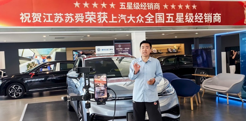 蘇舜公司創(chuàng)新“直播+服務(wù)”銷(xiāo)售模式,重點(diǎn)發(fā)力“抖音、小紅書(shū)”等平臺(tái),加大直播場(chǎng)次與粉絲互動(dòng),將留資轉(zhuǎn)化率提升至12%,平均觀看時(shí)長(zhǎng)達(dá)到23分鐘。圖為工作人員在直播間提供二手車(chē)在線置換評(píng)估、金融方案計(jì)算等服務(wù)。