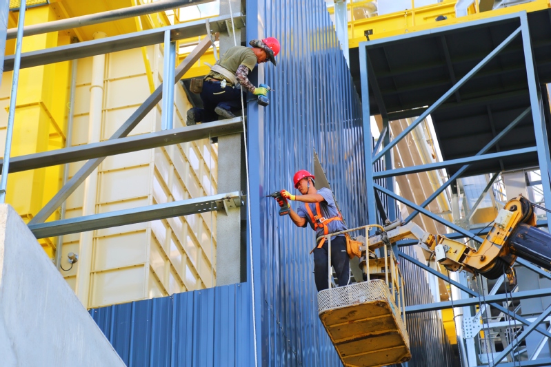 8月12日,在崗埠農(nóng)場(chǎng),建筑工人們配合大型吊車(chē),加緊進(jìn)行糧食烘干倉(cāng)封頂作業(yè)。連日來(lái),施工單位搶抓早晚有利時(shí)機(jī),抓緊推進(jìn)5G+智慧糧倉(cāng)建設(shè),爭(zhēng)取項(xiàng)目早日建成投產(chǎn),助力糧食安全。