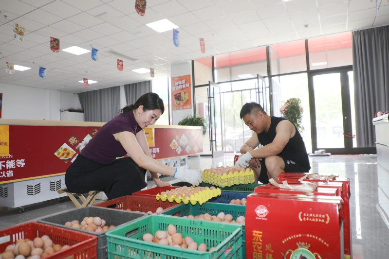 近日,東辛農(nóng)場首批自營養(yǎng)殖的初生蛋一上線就備受追捧,線上預約通道開啟僅2小時,330斤初生蛋就被搶訂一空,上演了“秒搶”場面。圖為工作人員正在分揀打包初生蛋。